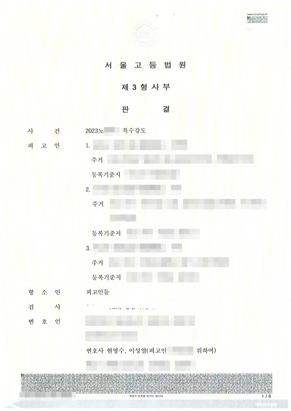 [항소심 3년 감형] 1심에서 징역 6년을 선고받은 의뢰인이 항소심에서 3년으로 감형 이 사건은 특수강도 사건으로 의뢰인에 대하여 1심에서 징역 6년이 선고되었습니다.본 변호인은 1심이 대법원 양형기준을 잘못 적용하였다는 점을 주장하였습니다. 항소심에서 본 변호인의 주장이 받아들여져 양형기준을 다시 적용한 결과 3년의 형이 감형되었습니다.