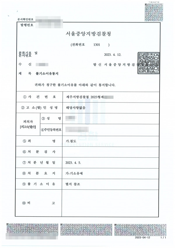 [기소유예] 절도 형사사건 기소유예로 종결 (의뢰인은 공무원으로 반드시 기소유예가 필요했던 사안) 절도 형사사건 검사의 기소유예 처분으로 종결된 사례입니다.의뢰인은 공무원으로 반드시 기소유예가 필요했던 사건이었습니다.