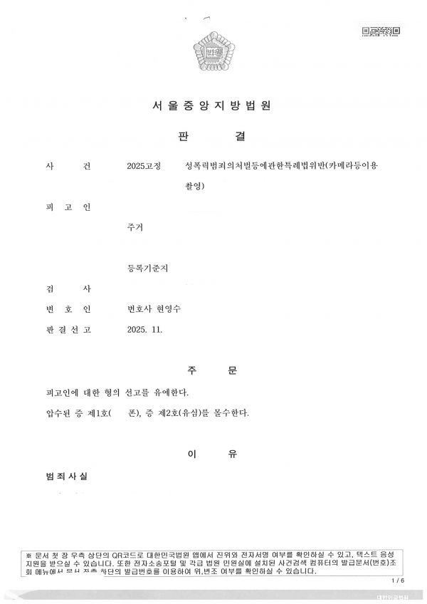 - [성폭법위반 카메라촬영 선고유예] 성폭력범죄의처벌등에관한특례법위반(카메라등이용촬영) 선고유예
